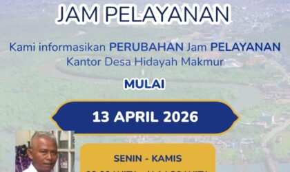TANAH BUMBU -Pelopornewskalimantan.com- 13 April 2026 – Pemerintah Desa Hidayah Makmur mengumumkan perubahan jam operasional pelayanan…