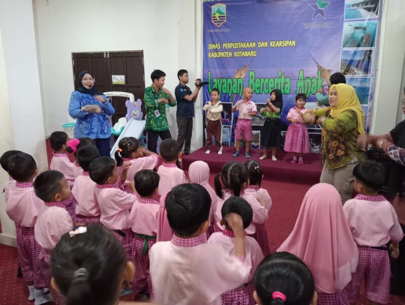 KOTABARU – PeloporNews Kalimantan – Suasana riang dan tawa anak-anak memenuhi ruang Perpustakaan Daerah Kabupaten Kotabaru, Kamis (23/10). Di tengah rak buku yang tertata rapi dan warna-warni gambar edukatif, puluhan anak dari berbagai Taman Kanak-Kanak (TK) tampak antusias mengikuti kegiatan “Kelas Literasi dan Bercerita Anak” yang digelar oleh Dinas Perpustakaan dan Kearsipan (Dispersip) Kabupaten Kotabaru.
