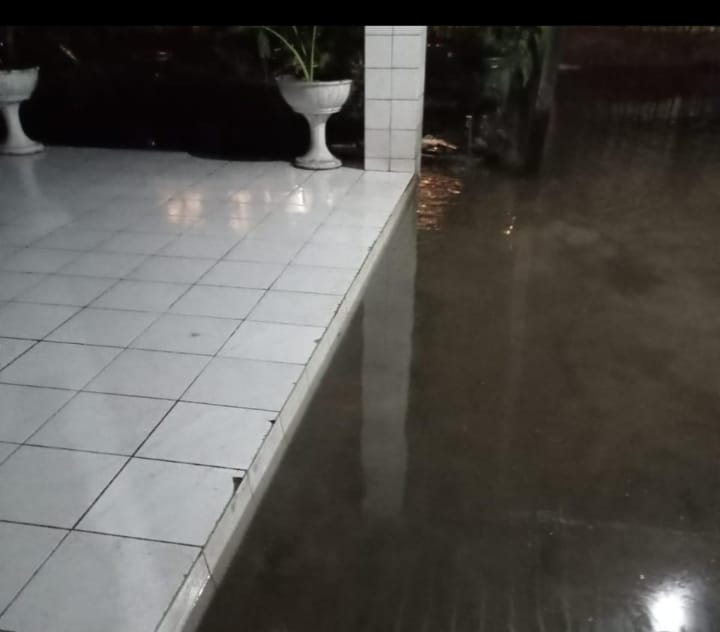 “Air dari arah permukiman dan kantor di sekitar sini sekarang tidak bisa mengalir. Akhirnya masuk ke rumah kami yang posisinya lebih rendah,” keluh Husni, warga Jalan Karyawan, yang saat itu sedang menemani orang tuanya di rumah, Kamis (23/10/2025).