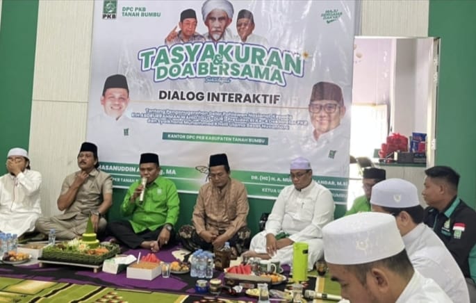 Tanah Bumbu –PeloporNews Kalimantan -Dewan Pimpinan Cabang Partai Kebangkitan Bangsa (DPC PKB) Tanah Bumbu menggelar Tasyakuran, Doa Bersama, serta Dialog Interaktif dalam rangka menyambut penganugerahan gelar Pahlawan Nasional kepada KH Abdurrahman Wahid (Gus Dur), Presiden ke-4 RI sekaligus deklarator PKB, dan Syaikhona Muhammad Kholil, ulama besar Nusantara. Kegiatan berlangsung khidmat di kantor DPC PKB Tanah Bumbu pada Kamis (14/11) sekitar pukul 14.00 Wita.