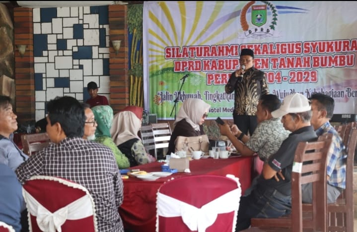 Tanah Bumbu —PeloporNewsKalimantan- Suasana mendung dan udara sejuk seusai hujan pagi menjadi pembuka yang menenangkan bagi acara Silaturahmi dan Syukuran DPRD Tanah Bumbu Lintas Periode yang digelar pada Minggu, 16 November 2025, di Pendopo Hotel Medinah Pagatan. Kegiatan ini menjadi momentum penting bagi para legislator dari berbagai periode untuk kembali berkumpul, mengenang masa perjuangan, dan memperkuat hubungan kekeluargaan dalam perjalanan panjang pemerintahan Kabupaten Tanah Bumbu.